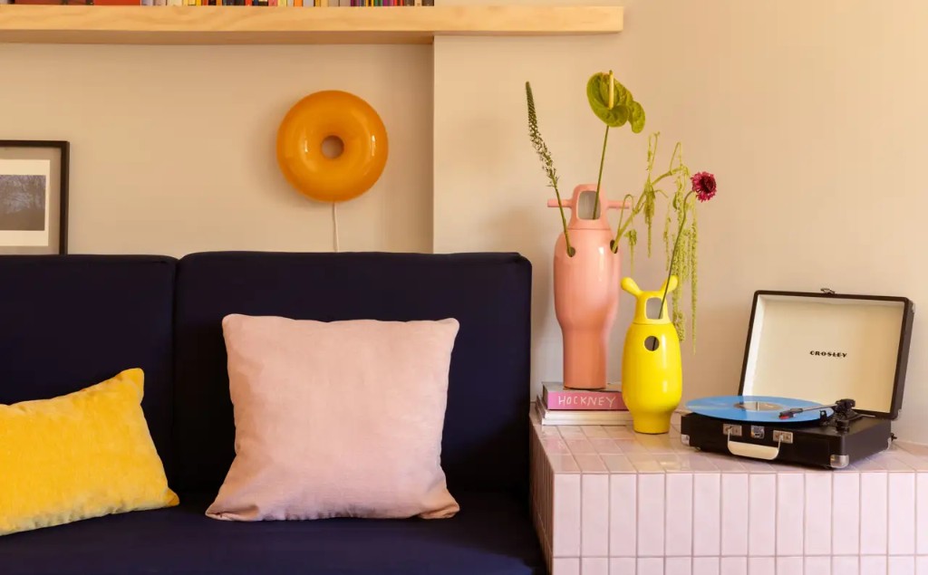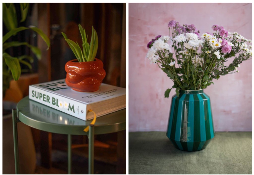 Pequeños objetos como jarrones o floreros de diseño son una gran forma de sumar color sin sobrecargar el ambiente: aportan personalidad, textura y pueden colocarse fácilmente sobre una mesa, una biblioteca o una consola.