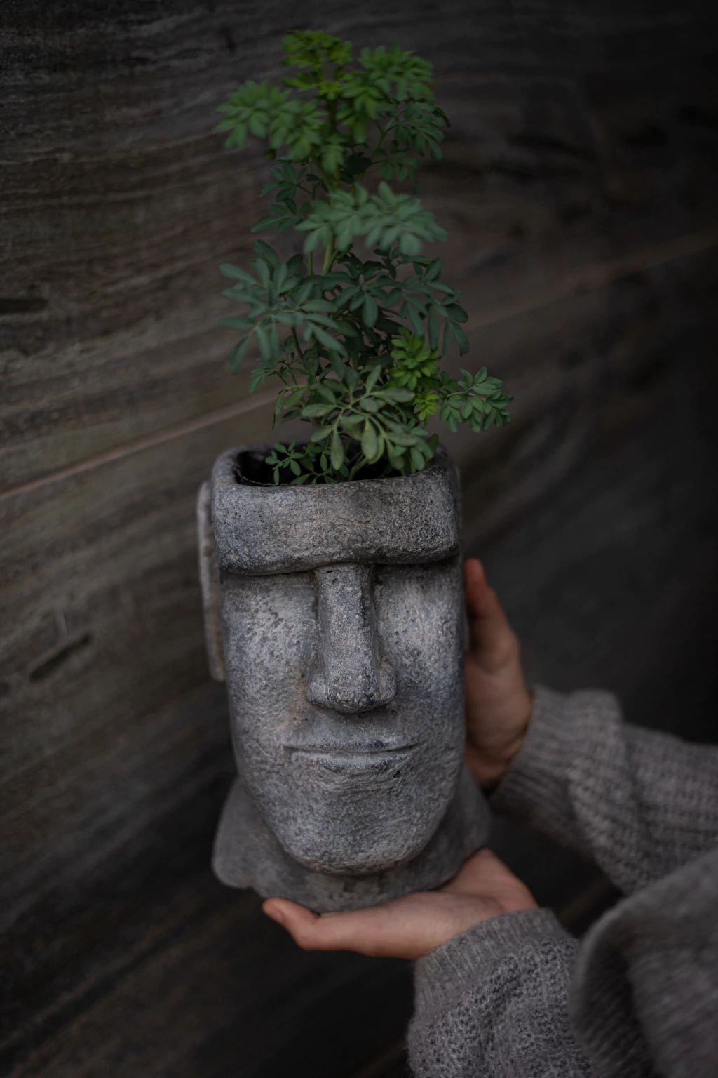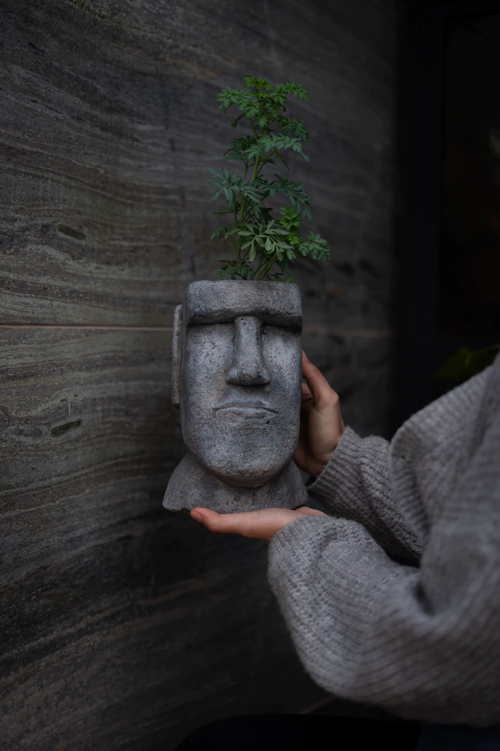 MACETA MOAI CEMENTO 13X14X22CM